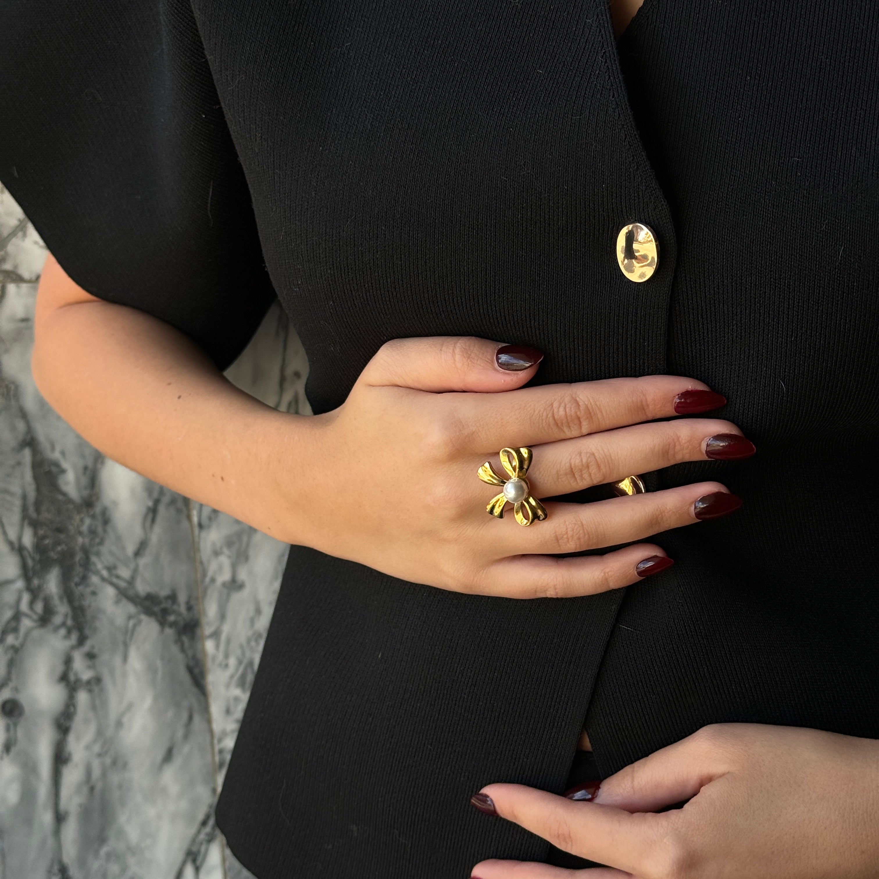 MEGA PEARL BOW Ring