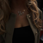 Halsbandet är tillverkat av kirurgiskt stål och mässing. Alla produkter är fria från nickel, bly och kadmium. Halsbandsdesignen är pläterad i äkta 18K guld/925 sterling silver i en miljövänlig produktion.