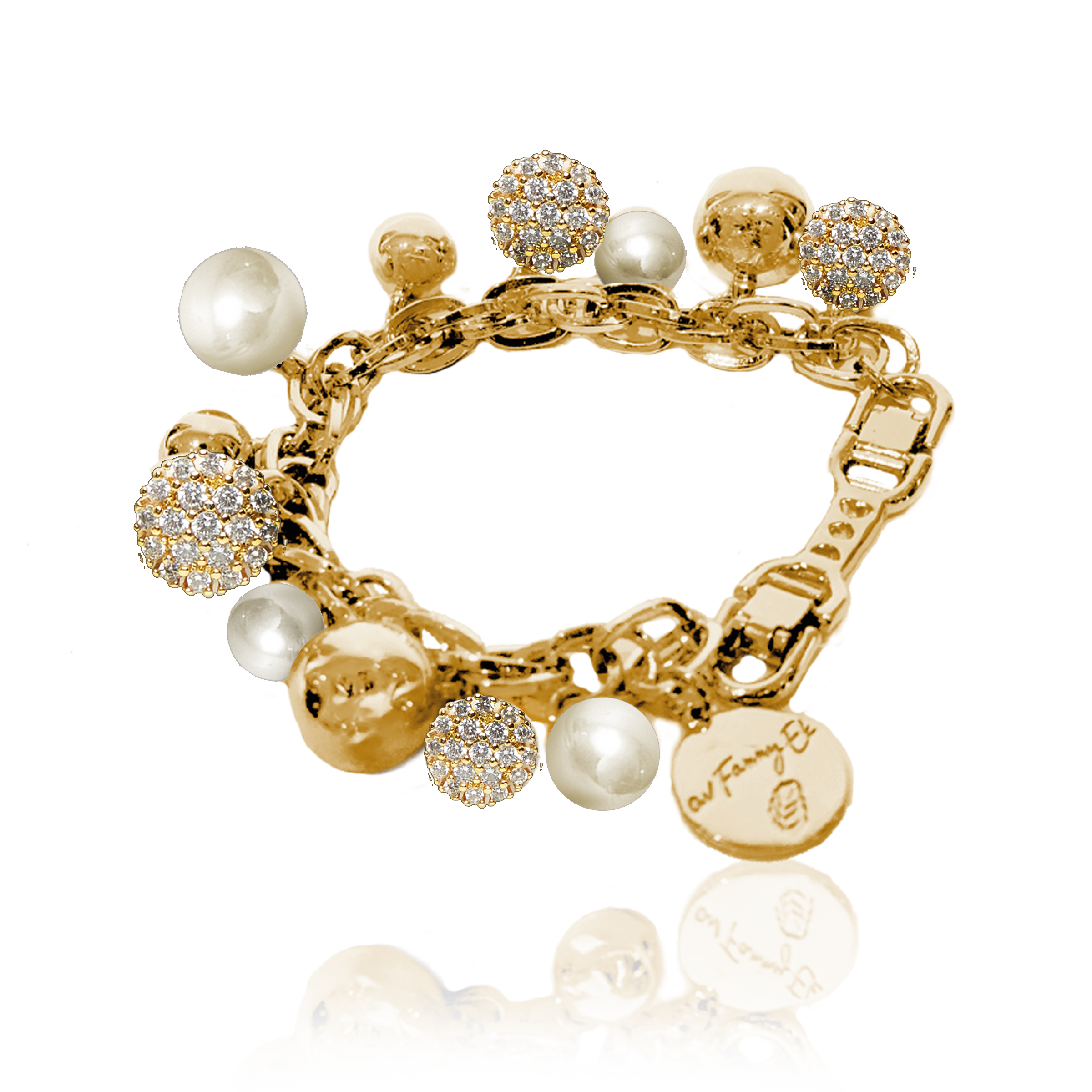 Armbandet är tillverkat av kirurgiskt stål och är fritt från nickel, bly och kadmium. Armbandsdesignen är 18K guld/925 Sterling silverpläterad mässing.