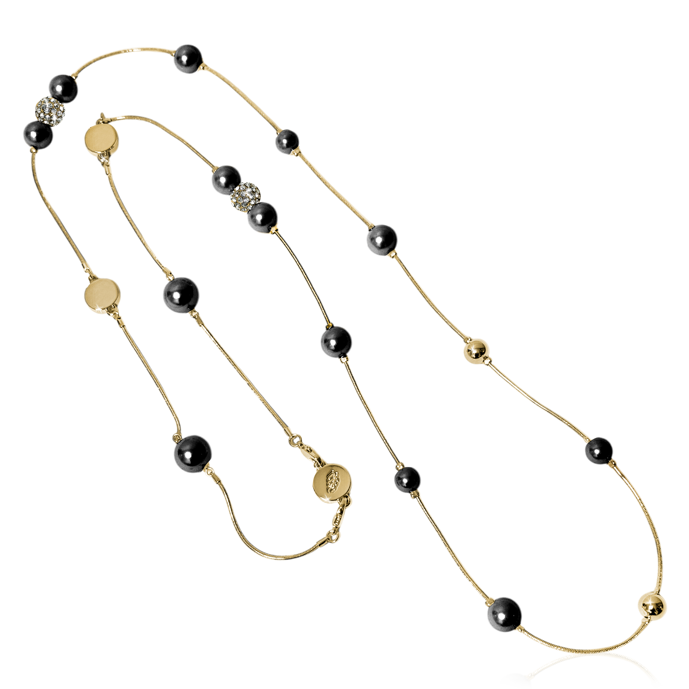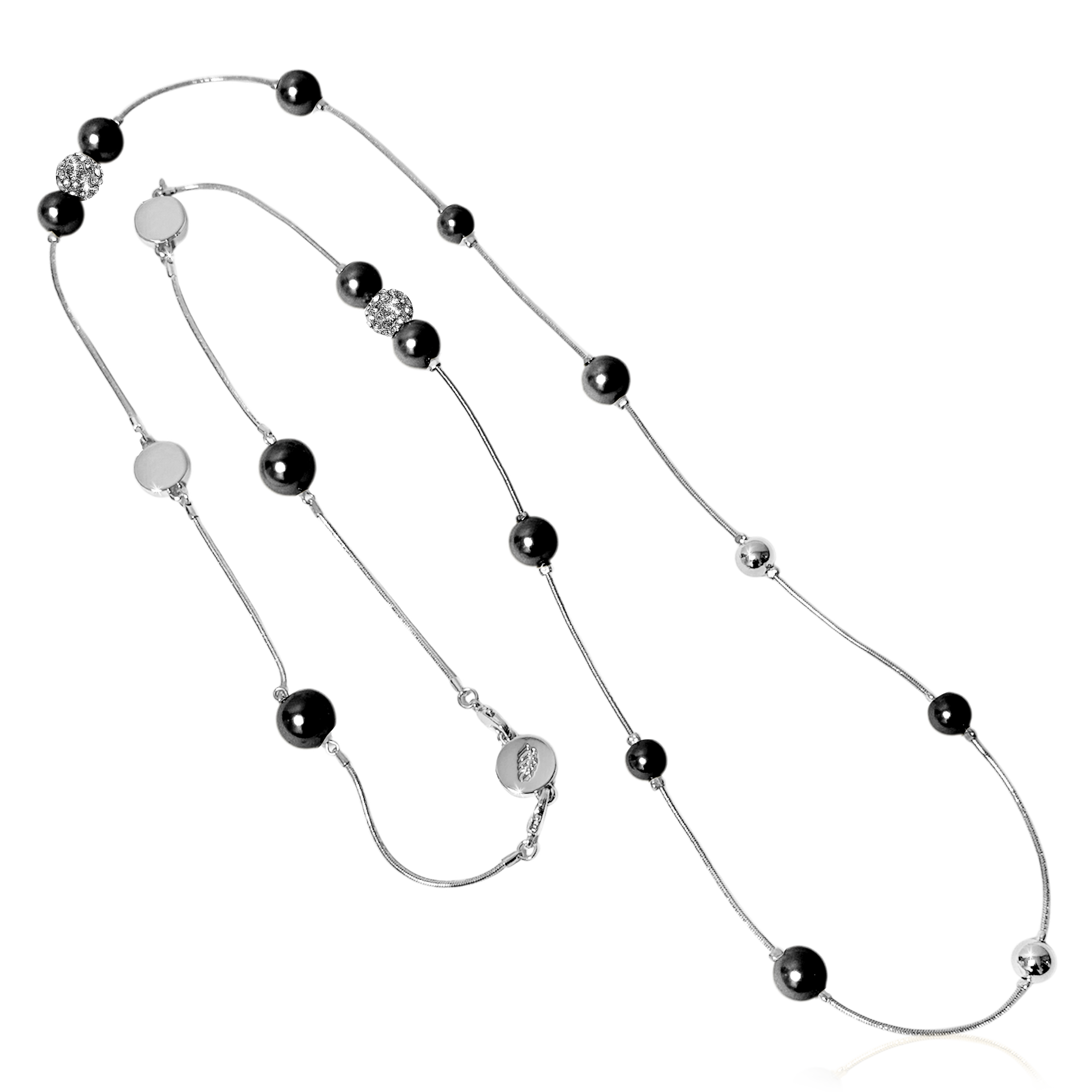 • Elegant beading : Pearls and crystal balls are evenly spaced along a thin, shiny chain for an airy and balanced look.