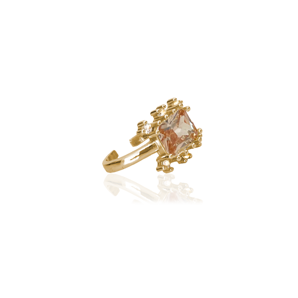 Squared Sunshine Crystal Ring Amber