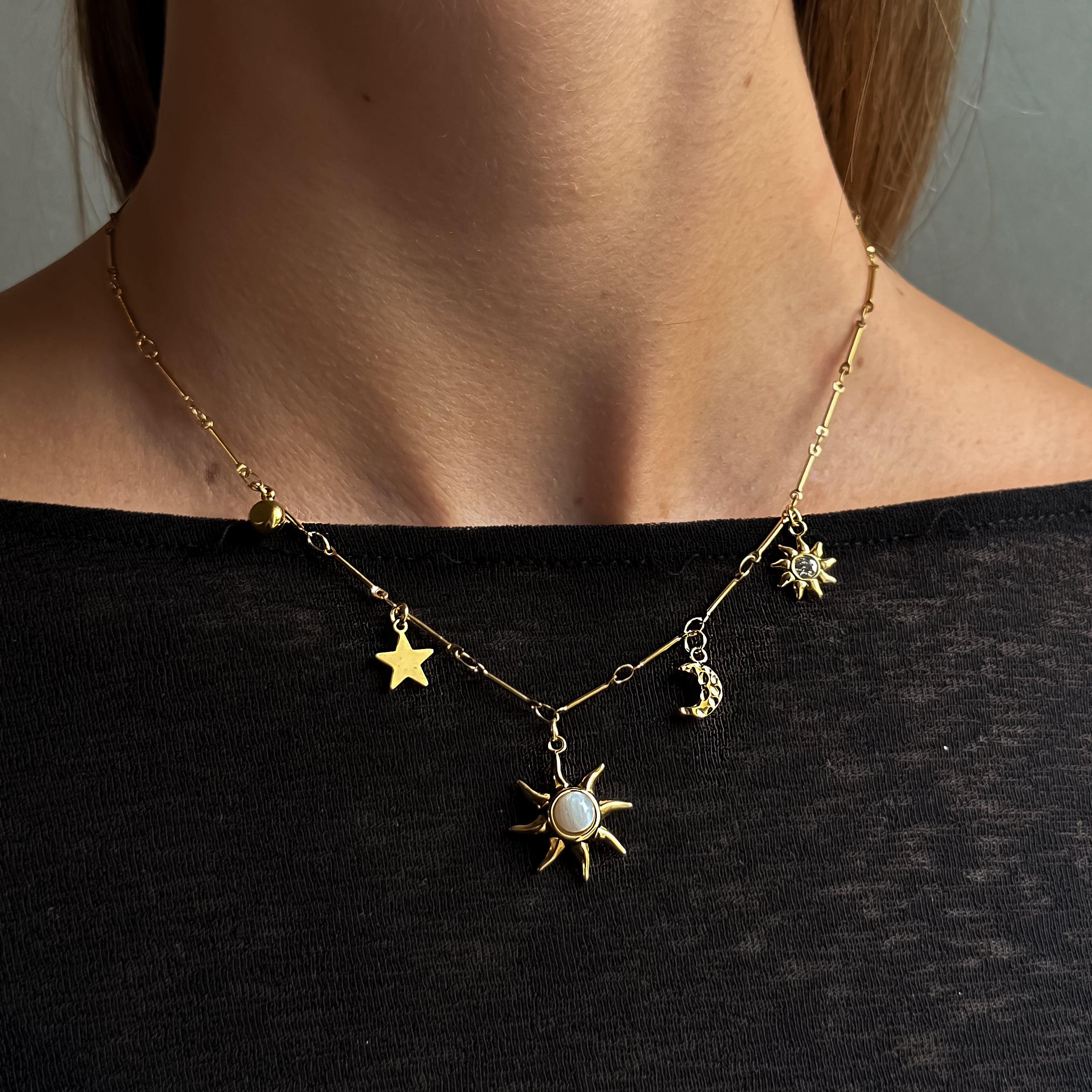 SOLAR CHARM NECKLACE Gold 40+6 cm