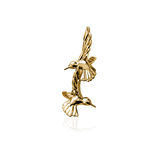 En elegant brosch - unik design med två flygande kolibrier i detaljrik finish. Den stilfulla silhuetten framhäver kolibrins rörelse och grace, vilket skapar en unik statement-accessoar – handgjord och limiterad för en exklusiv känsla. Perfekt för att matcha din partner eller som en extra matchande accessoar detalj till din outfit.