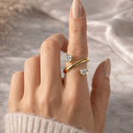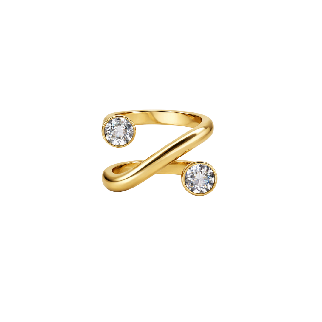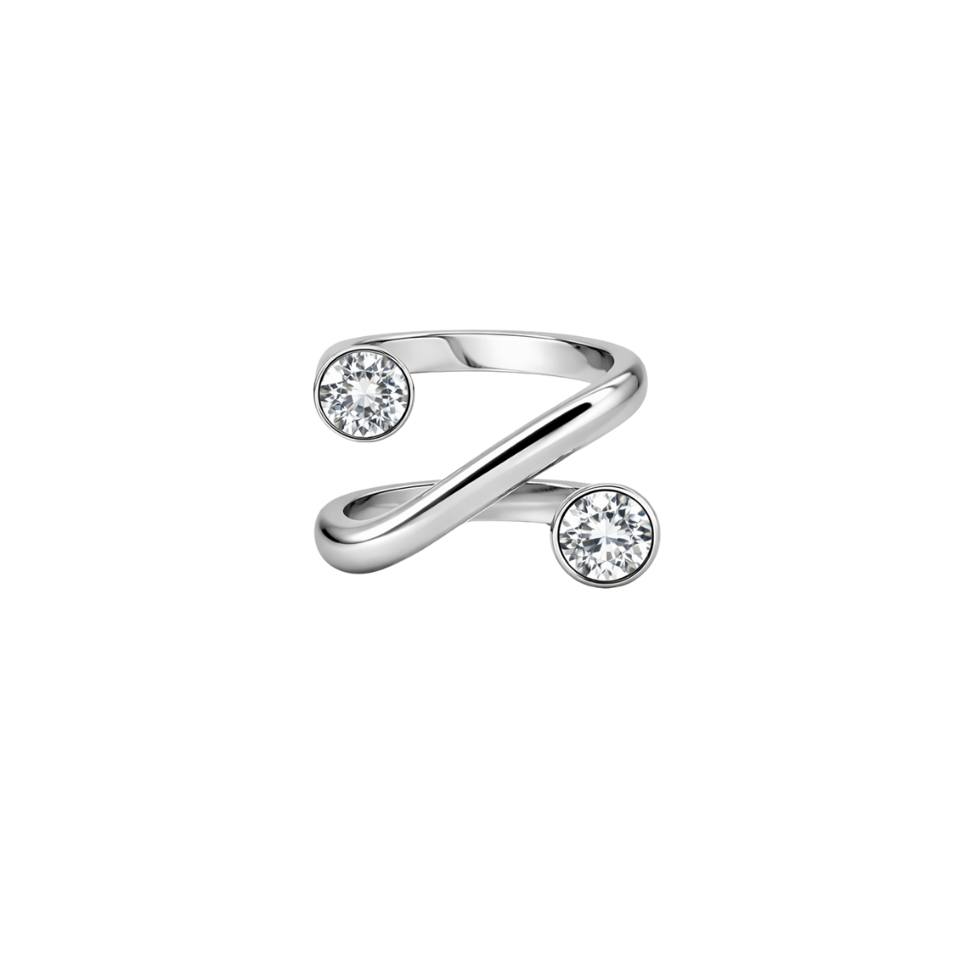 Möt Linear Crystal Luxe ring – en minimalistisk men maxad accessoar. Denna öppna, justerbara ring pryds av två gnistrande kristaller i en stilren linjär design som ger både rörelse och elegans.