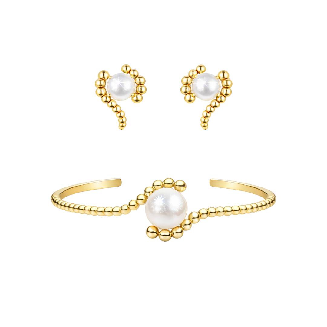 SCULPTURAL PEARL Stud Örhängen + Cuff Armband Set